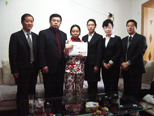 張趙瑛是華春員工張趙燕先生的妹妹,不幸患了鼻腔癌,因醫(yī)病而花費(fèi)巨大并欠了外債。當(dāng)華春全員得知她正在承受著疾病與經(jīng)濟(jì)負(fù)擔(dān)的雙重壓力時(shí),“全國關(guān)愛員工優(yōu)秀民營企業(yè)家”華春投資集團(tuán)董事局主席兼總裁李成功先生立即資助一萬元。華春員工也紛紛捐款,或多或少,皆是一片心意。鄧副總向張趙瑛轉(zhuǎn)達(dá)了李總裁對(duì)她的問候,希望她樹立信心,以積極的心態(tài)戰(zhàn)勝疾病,華春視每一位員工和員工親屬為家人,關(guān)愛員工、幫助員工是華春應(yīng)盡的社會(huì)責(zé)任。