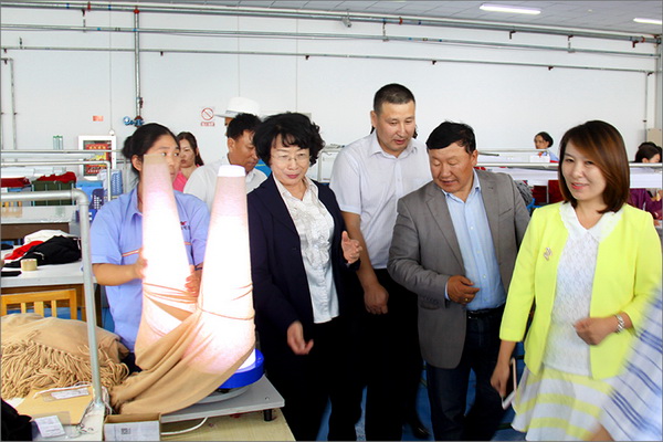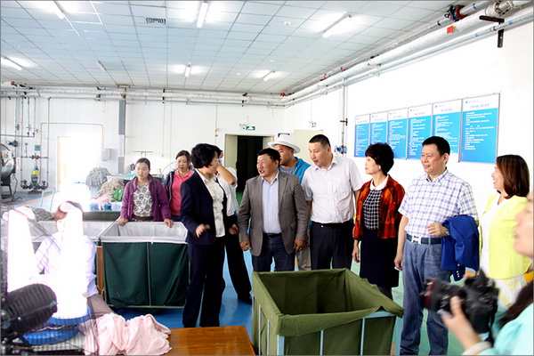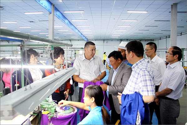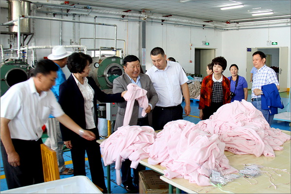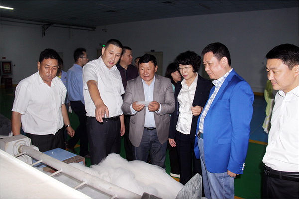 策文繞登省長一行對(duì)華春集團(tuán)下屬的子公司華春毛紡工業(yè)園進(jìn)行了考察,在參觀了以現(xiàn)代化設(shè)備加工生產(chǎn)高檔羊絨制品的全過程后,與華春集團(tuán)就羊絨原料的戰(zhàn)略采購合作進(jìn)行了詳細(xì)全面的洽談。李成功總裁向策文繞登省長一行介紹了華春毛紡產(chǎn)業(yè)今后發(fā)展的總體戰(zhàn)略規(guī)劃、華春毛紡工業(yè)園一期每年的生產(chǎn)原料所需量和產(chǎn)品出口及品牌建設(shè)目標(biāo)等情況,希望在中國建設(shè)絲綢之路經(jīng)濟(jì)帶的重大歷史機(jī)遇下,共享新絲綢之路經(jīng)濟(jì)帶構(gòu)想帶來的互惠互利。策文繞登省長介紹了蒙古國科布多省畜牧業(yè)羊絨生產(chǎn)的基本狀況。他表示,希望與華春集團(tuán)建立長期的羊絨供貨合作關(guān)系,以帶動(dòng)蒙古國科布多省畜牧業(yè)的發(fā)展。