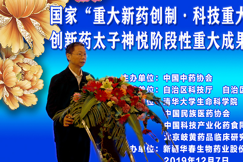 首先,受中國工程院院士、中國中藥協(xié)會黃潞琦會長委托,中國中藥協(xié)會常務(wù)副會長劉張林先生致辭,他說,歷經(jīng)17年的艱辛努力,在國家衛(wèi)計委、科技部、國家藥監(jiān)局、新疆維吾爾自治區(qū)人民政府高度重視與大力支持下,由清華大學(xué)、新疆華春生物藥業(yè)股份有限公司共同研發(fā)的中國原創(chuàng)性抗抑郁中藥創(chuàng)新藥太子神悅順利完成三期臨床研究總結(jié),結(jié)果顯示,太子神悅膠囊的有效率為75.14%,與經(jīng)典化學(xué)藥氟西汀相當(dāng),而在安全性以及癥候改善方面太子神悅具有明顯優(yōu)勢,充分體現(xiàn)了中醫(yī)藥在精神神經(jīng)疾病領(lǐng)域的特色與生命力。能夠取得如此成果,真是可喜可賀!抑郁癥已經(jīng)成為全球致殘率第一的重大疾患,并已超過心腦血管病成為全球第二大疾病。太子神悅階段性重大成果是落實習(xí)近平總書記關(guān)于“守正創(chuàng)新”發(fā)展中醫(yī)藥事業(yè)重要指示的代表性進(jìn)展,填補了中國抗抑郁中藥原創(chuàng)性新藥創(chuàng)制的空白,必將對新疆中醫(yī)藥產(chǎn)業(yè)以及區(qū)域優(yōu)勢中藥材種植業(yè)的快速發(fā)展產(chǎn)生重大影響,同時對于推動中醫(yī)藥現(xiàn)代化也將具有里程碑意義!