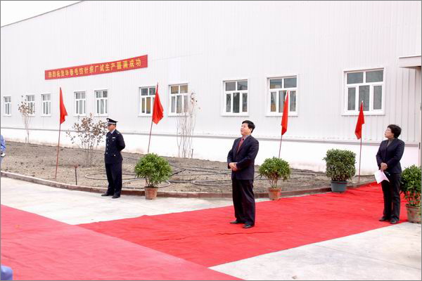 新疆華春投資集團李成功總裁、鄧潔文執總與集團高管參加了毛紡工業園針織廠試生產儀式,并先后發表了熱情洋溢的致辭。儀式由董事局主席助理、華春毛紡執總李鳳香主持。