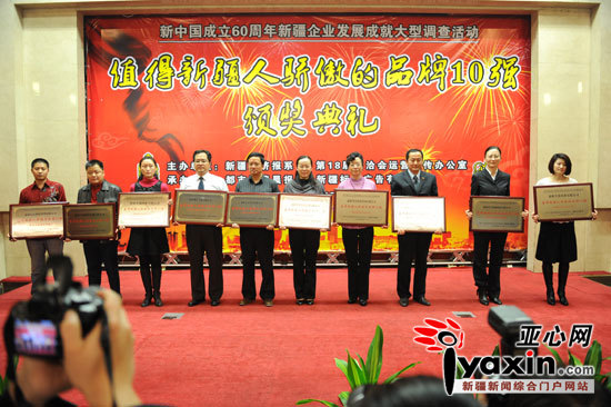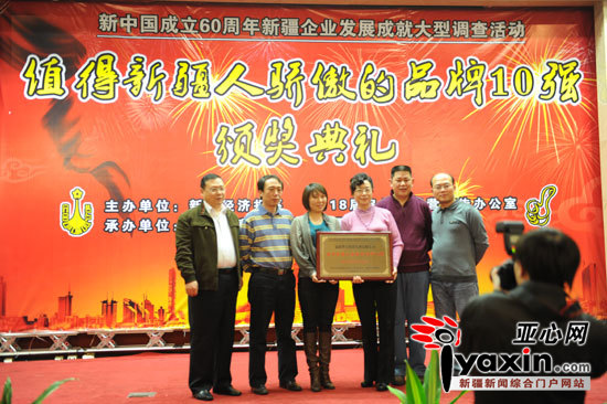 《亞心網(wǎng)》2009.11.09報道:“值得新疆人驕傲的品牌10強(qiáng)”評選活動頒獎