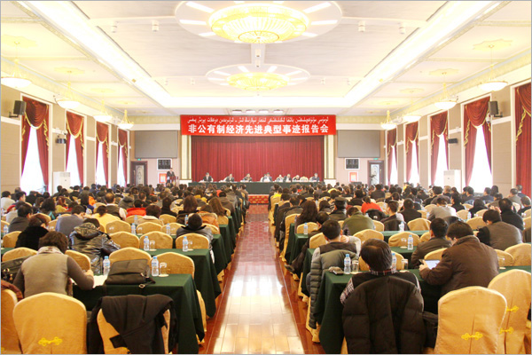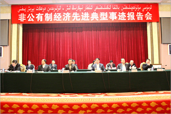 新疆隆重召開非公有制經(jīng)濟(jì)先進(jìn)典型事跡報(bào)告會(huì)--新疆華春集團(tuán)有限公司李成功總裁在會(huì)上報(bào)告先進(jìn)典型事跡