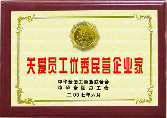 “關愛員工優秀民營企業家”榮譽證書